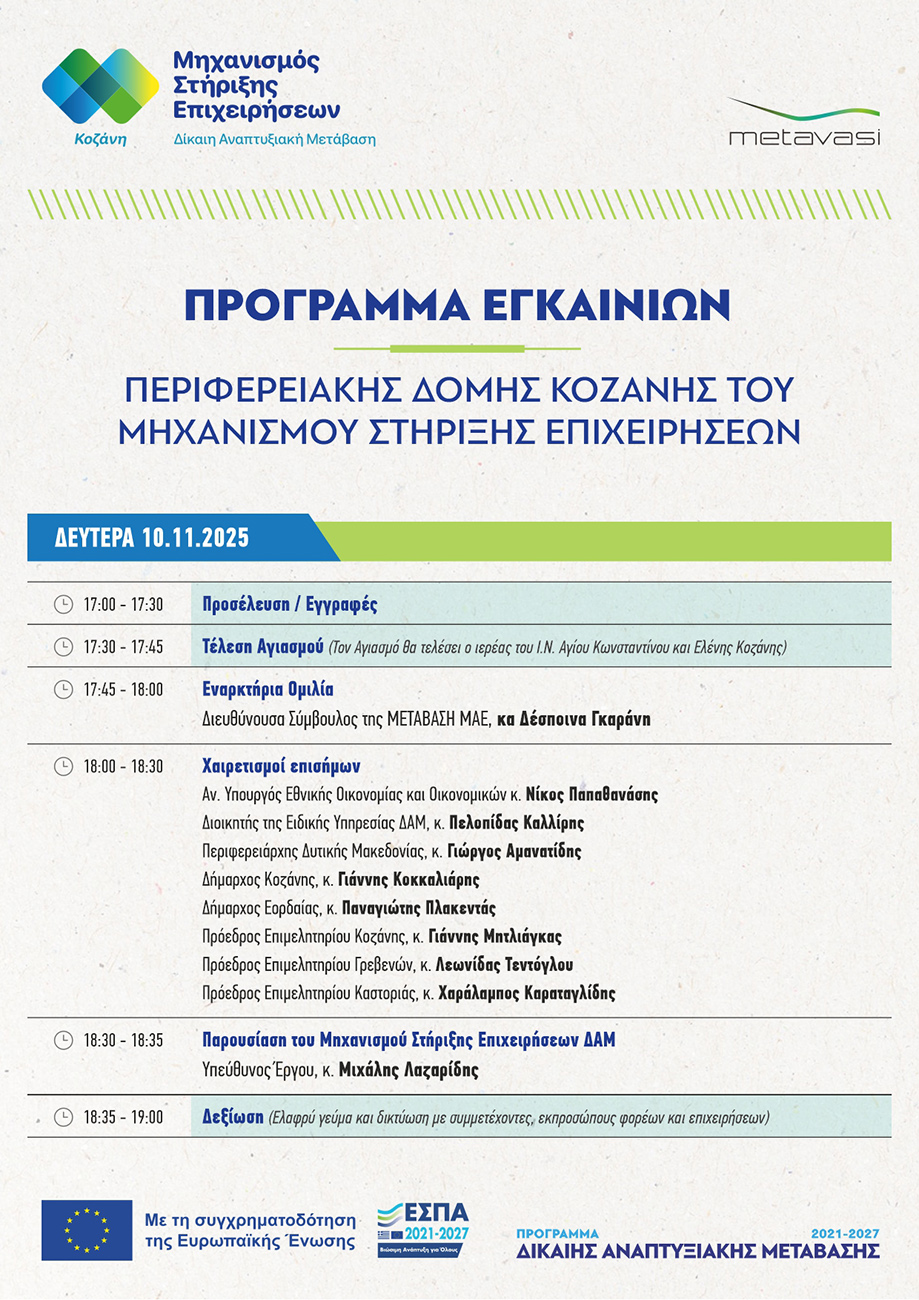 ΕΠΙΚΑΙΡΟΤΗΤΑ - Εγκαίνια Περιφερειακής Δομής Κοζάνης του Μηχανισμού Στήριξης Επιχειρήσεων