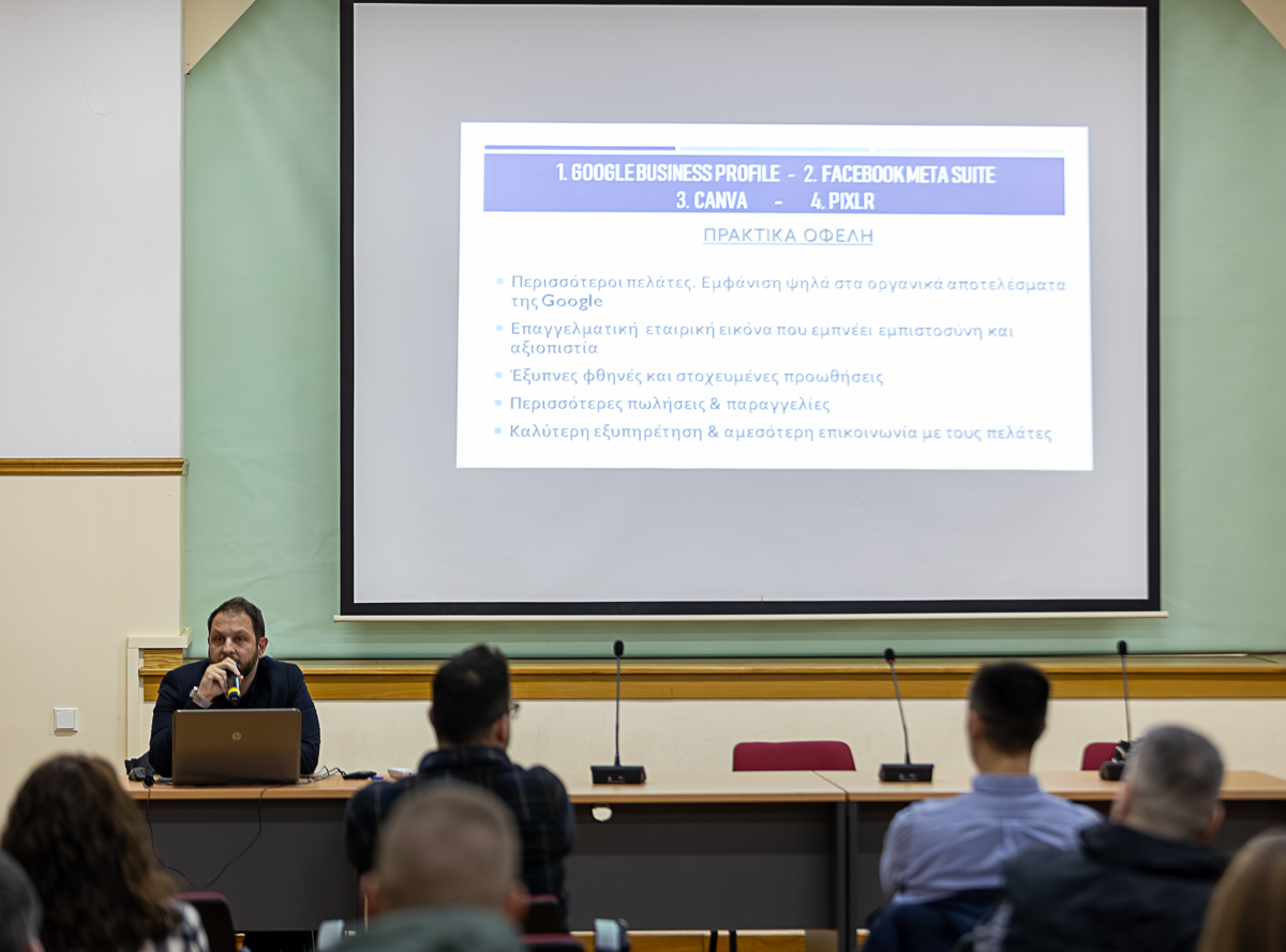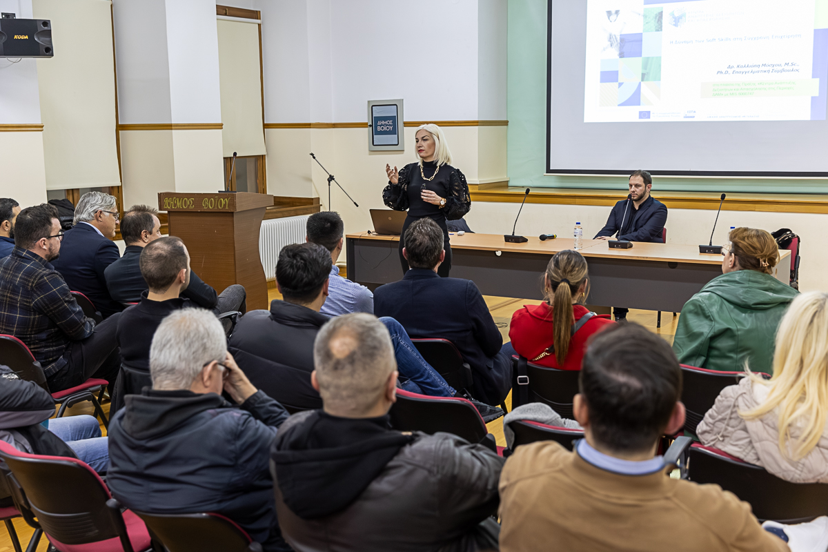 Τον συντονισμό της ημερίδας είχε ο κ. Κώστας Κατσαούνης, Υπεύθυνος Συμβουλευτικής Επιχειρήσεων του Επιμελητηρίου Κοζάνης.