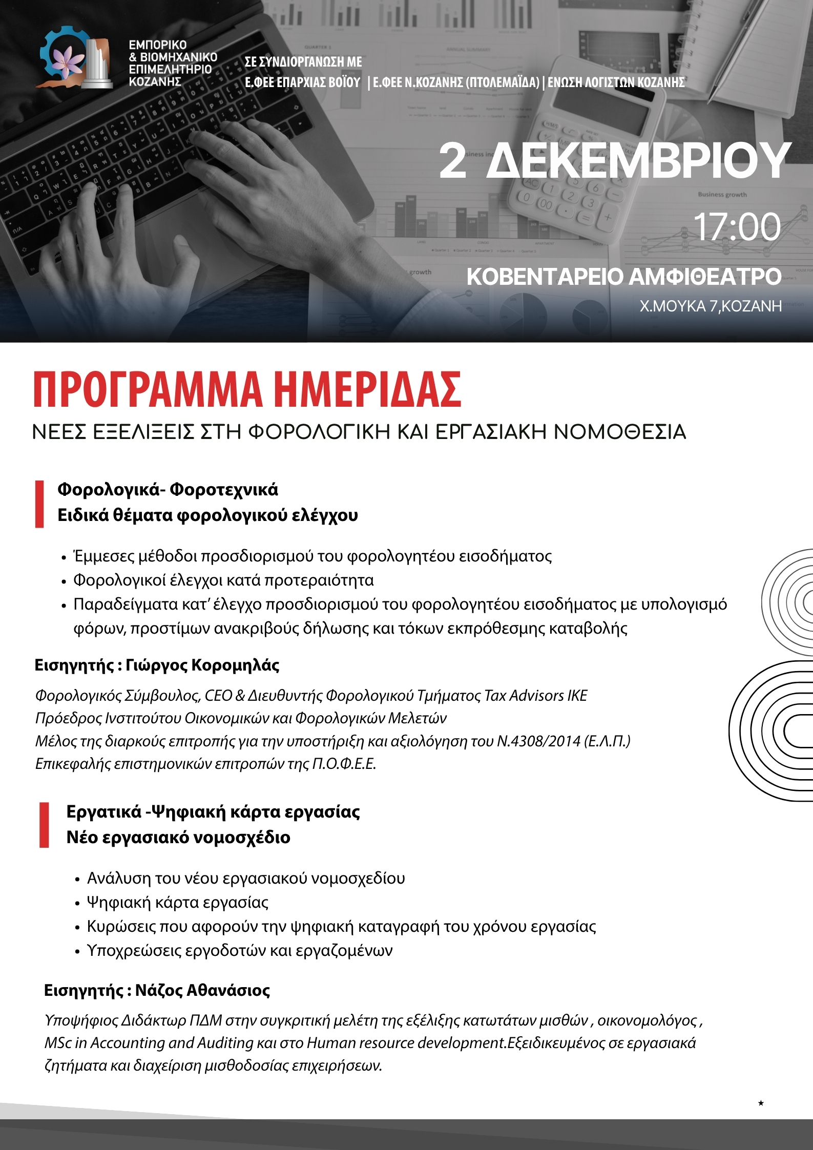 Ημερίδα Ενημέρωσης : Νέες Εξελίξεις στη Φορολογική και Εργασιακή Νομοθεσία