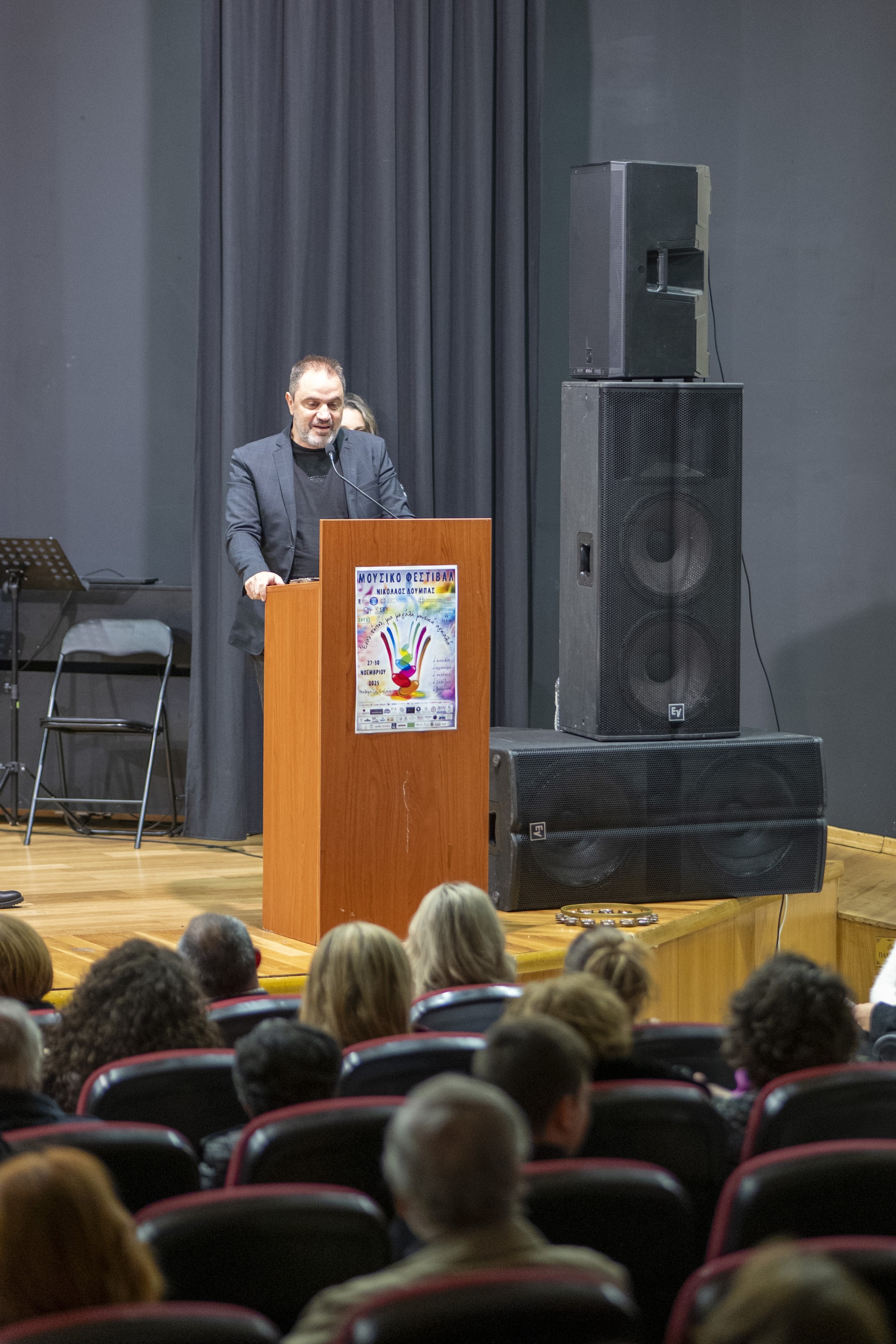Ο Πρόεδρος του Επιμελητήριου Κοζάνης στη διάρκεια της εναρκτήριας εκδήλωσης συνεχάρη τους διοργανωτές για την άρτια οργάνωση του 1ου Μουσικού Φεστιβάλ «Νικόλαος Δούμπας» στην Πτολεμαΐδα και τόνισε τη σημαντική συμβολή του Επιμελητηρίου Κοζάνης στη στήριξη του πολιτισμού, της νέας γενιάς και της τοπικής κοινωνίας.