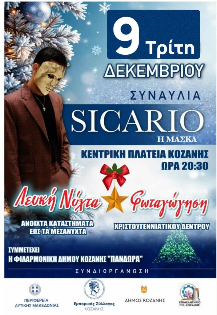 « Πρόκειται για μια βραδιά που θα μετατρέψει την πόλη μας σε ψυχαγωγικό επίκεντρο! Φέτος η μεγάλη συναυλία που συνδιοργανώνεται με την Περιφέρεια Δυτικής Μακεδονίας, τον Δήμο Κοζάνης και το Επιμελητήριο Κοζάνης φιλοξενεί τον Sicario και έχει σκοπό να προσελκύσει επισκέπτες από τις γειτονικές περιοχές και όχι μόνο.