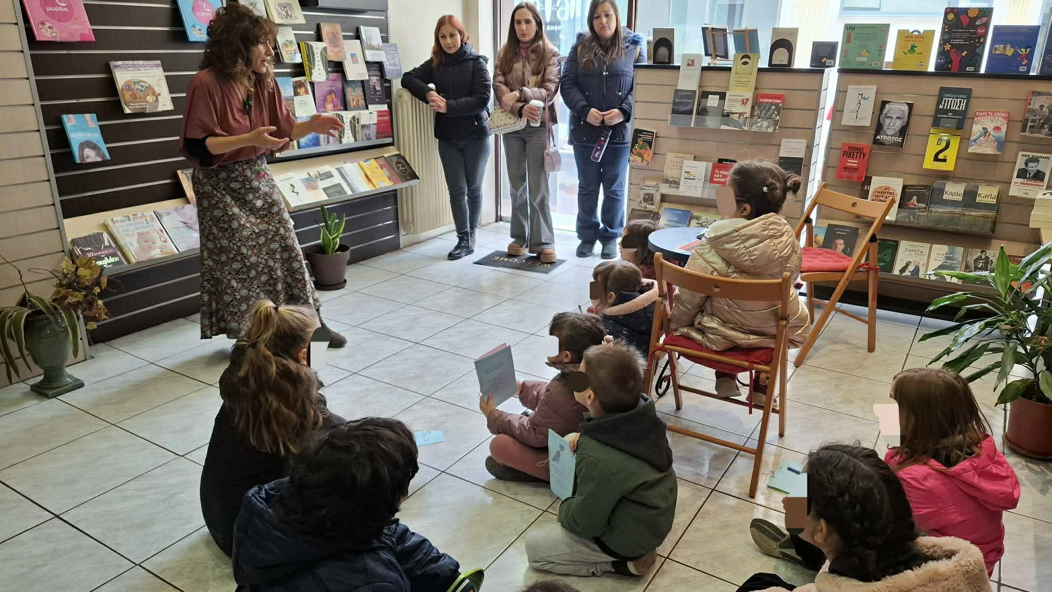 Με σημείο συνάντησης την κεντρική πλατεία, τα παιδιά έκαναν έναν πρωινό περίπατο σε βιβλιοπωλεία. Η πόλη μετατράπηκε σε έναν χάρτη ποίησης, αφήγησης και μουσικής. Σε κάθε στάση, αφηγητές και μουσικοί ζωντάνεψαν ποιήματα και ιστορίες για παιδιά, σε μια διαδρομή γεμάτη λόγο, ήχο και φαντασία. Οι μικροί φίλοι επισκέφθηκαν τα βιβλιοπωλεία: Πάπυρος, Συνεταιριστικό, Αθανασιάδης, Στοά του Βιβλίου, Σακαλής, Καταφυγή Βιβλιοφίλων, Μαγαζάκι στη Γωνία. Συμμετείχαν οι: Θεανώ Κουτσιμανή, Δέσποινα Παρδάλη, Λίλη Στραβοπόδη, Δώρα Τανή, Αναστασία Τοπάλη, Αναστασία Τσούνη, Νίκη Φωτιάδου.