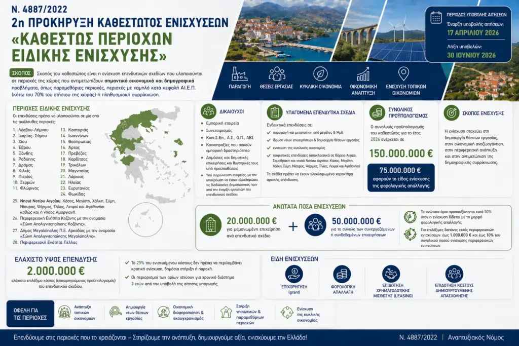 Πρόκειται για τα καθεστώτα της Μεταποίησης, των Μεγάλων Επενδύσεων και των Περιοχών Ειδικής Ενίσχυσης, για επενδύσεις σε παραμεθόριες περιοχές και περιοχές με χαμηλότερο εισόδημα από το 70% του εθνικού μέσου όρου.